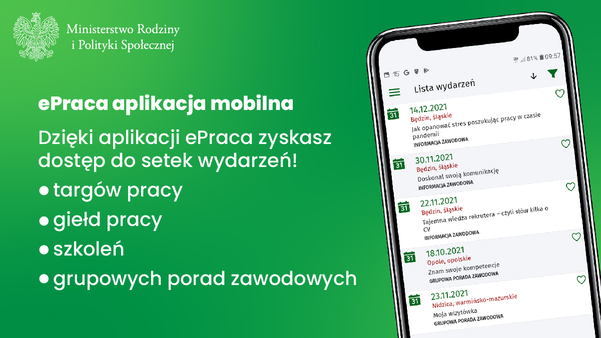 Zachęcamy Państwa do korzystania z nowo wydanej aplikacji mobilnej ePraca.