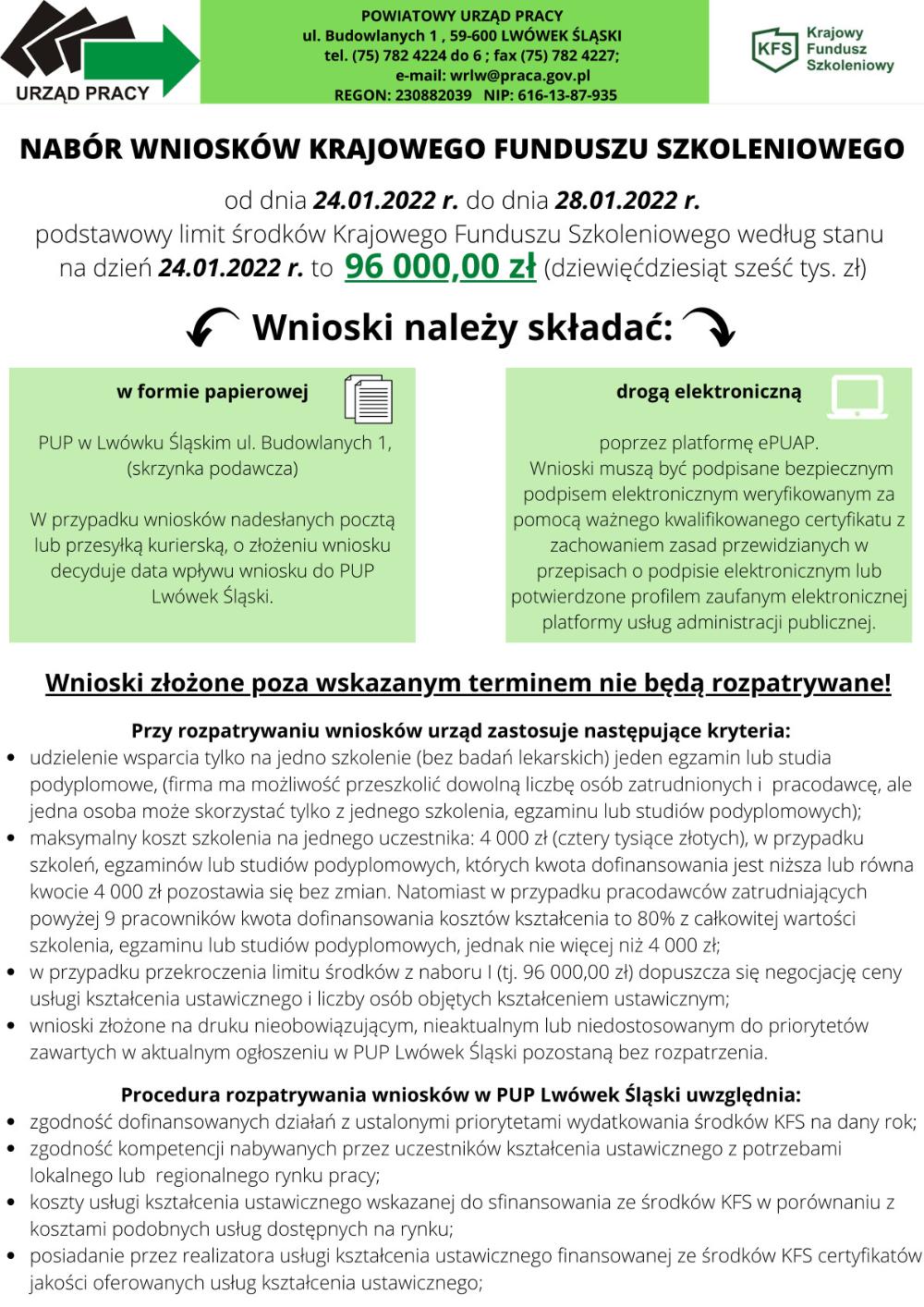 KFS 2022 r. - Ogłaszamy I nabór wniosków Krajowego Funduszu Szkoleniowego