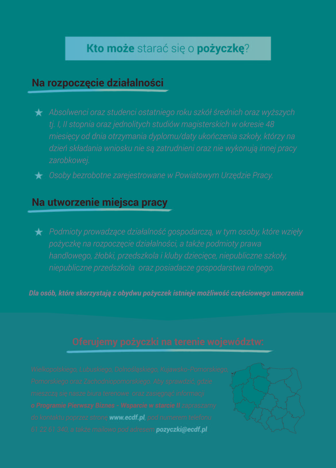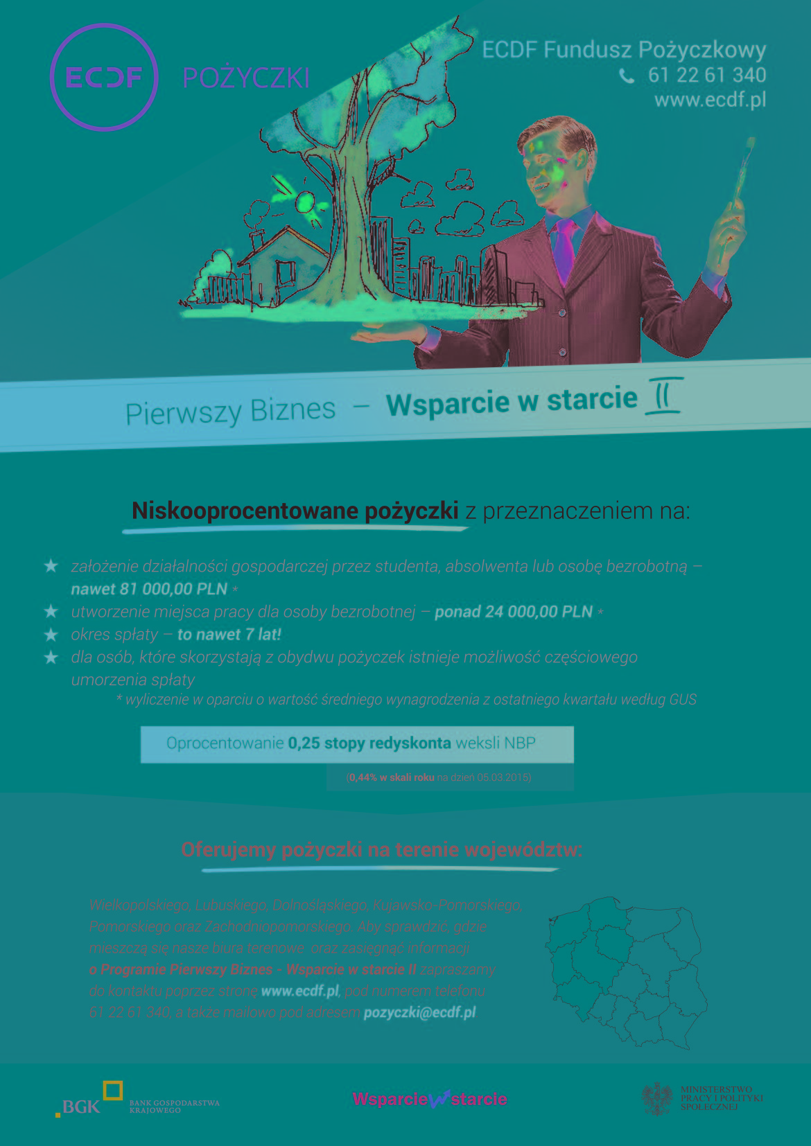 • Pożyczka na utworzenie stanowiska pracy dla bezrobotnego, w tym bezrobotnego skierowanego przez powiatowy urząd pracy