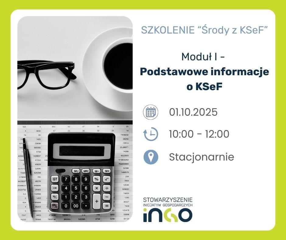 W imieniu Stowarzyszenia inGO serdecznie zapraszamy na kolejny cykl szkoleń pn. "Środy z KSeF", organizowany we współpracy z przedstawicielami Urzędu Skarbowego w Gostyniu. Cykl będzie składał się z 8 spotkań (4 spotkania w październiku, 2 spotkania w listopadzie oraz 2 spotkania w grudniu).