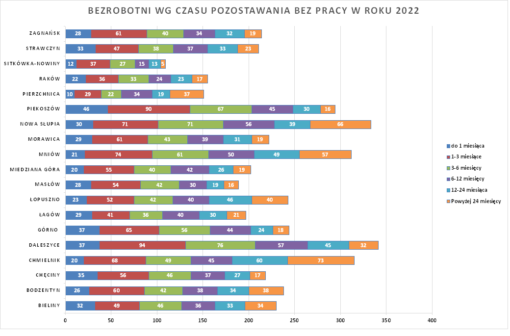 Statystyki - stan bezrobocia w gminach 2022 - Powiatowy Urząd Pracy w Kielcach