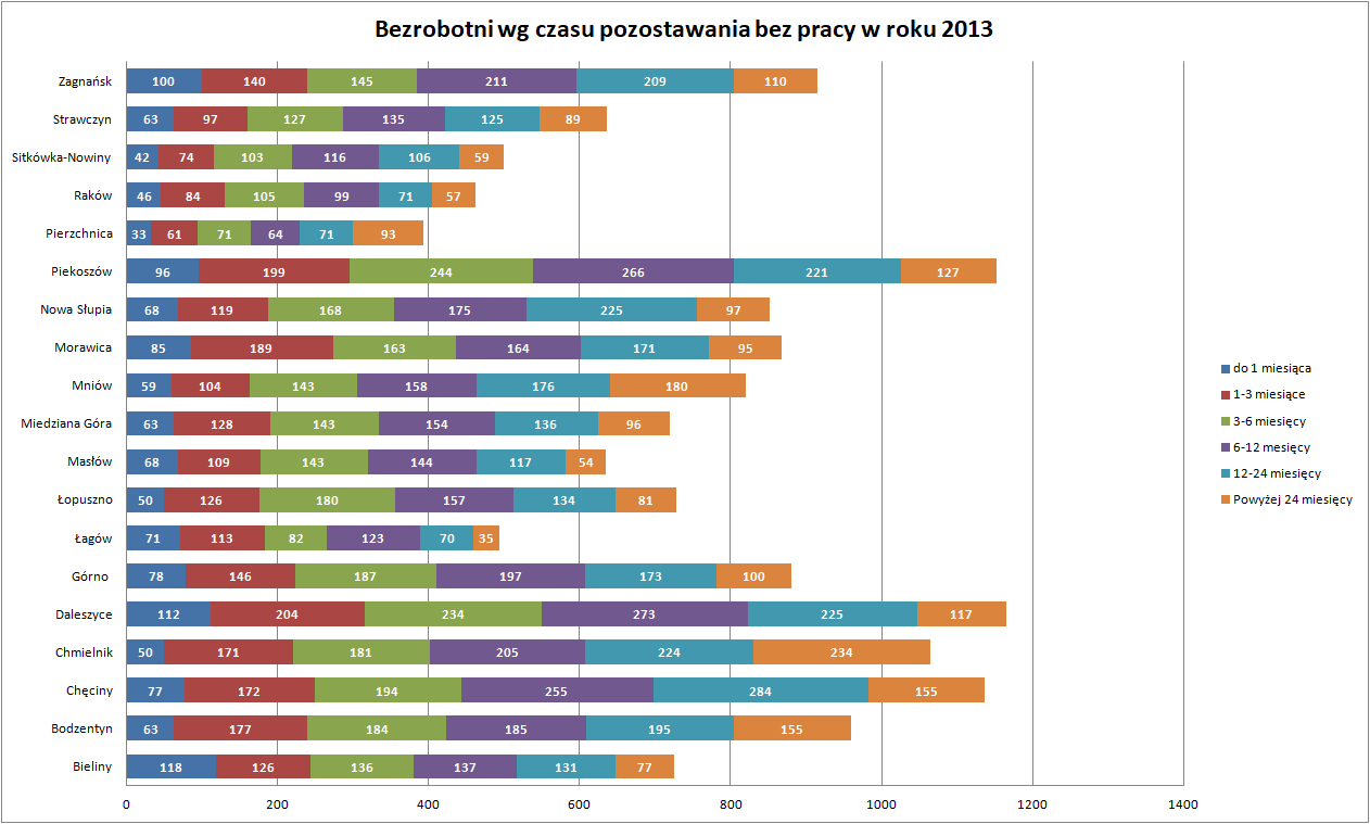 Statystyki - Stan bezrobocia w gminach 2013 - Powiatowy Urząd Pracy w Kielcach