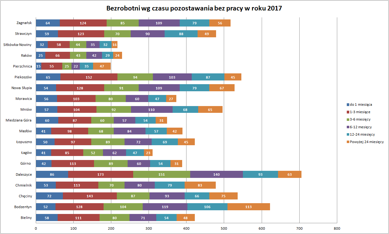 Statystyki - Stan bezrobocia w gminach 2017 - Powiatowy Urząd Pracy w Kielcach