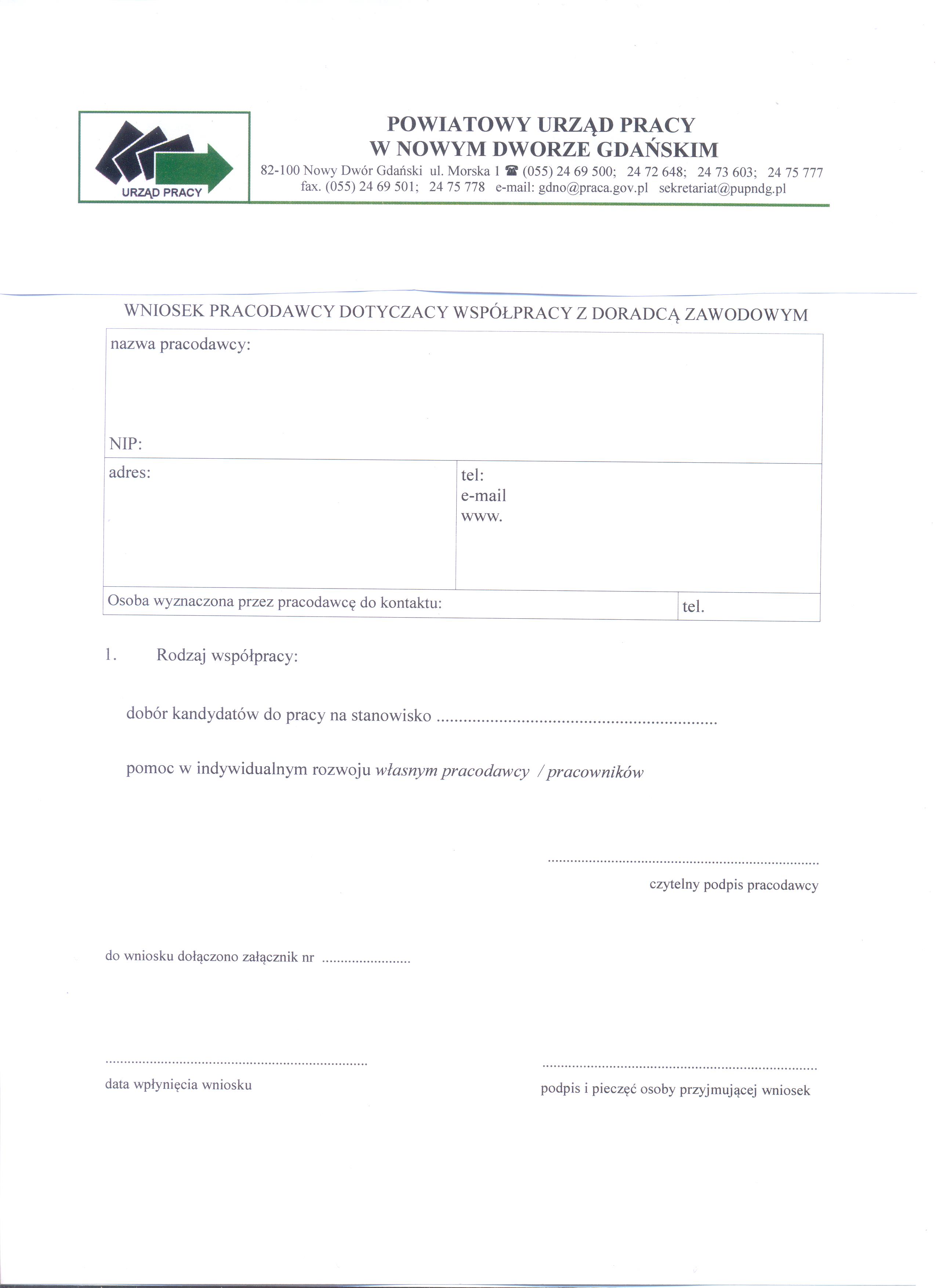 WNIOSEK PRACODAWCY DOTYCZĄCY WSPÓŁPRACY Z DORADCĄ ZAWODOWYM